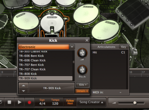 - Pat anwählen, wo Kick, Snare, Tom o.Ä. gespielt werde soll.