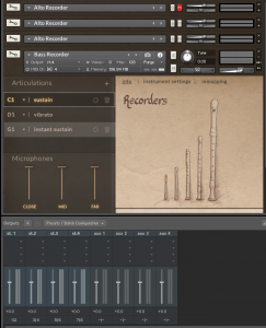 - In Kontakt Output-Anzeige einschalten und pro Stimme einen Output-Kanal (1 mit 2 Kanälen) einrichten. Diesen auf einen AUX-Kanal routen